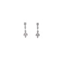 These elegant dangle earrings feature a delicate floral design, crafted with shimmering cubic zirconia stones. A single, round stone dangles from a cluster of marquise-shaped stones arranged in a floral pattern. The earrings are plated in rhodium for a lustrous, tarnish-resistant finish.